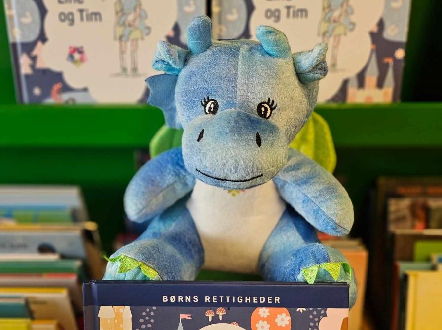 Den blå Tim-drage og bogen er delt ud i institutionerne i Odder Kommune, hvor pædagogerne sammen med børnene kan snakke om børns rettigheder.